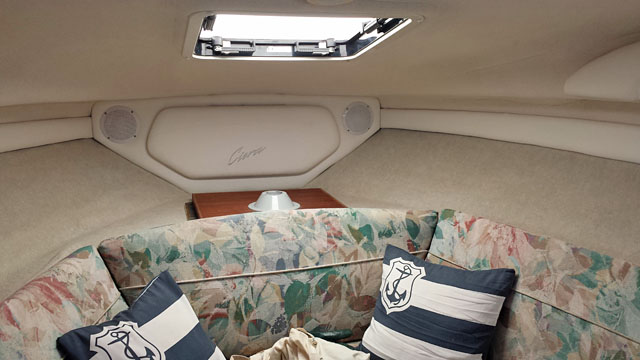 In der Kabine befindet sich eine V-Koje, ein Pantry-Block mit Kühlschrank