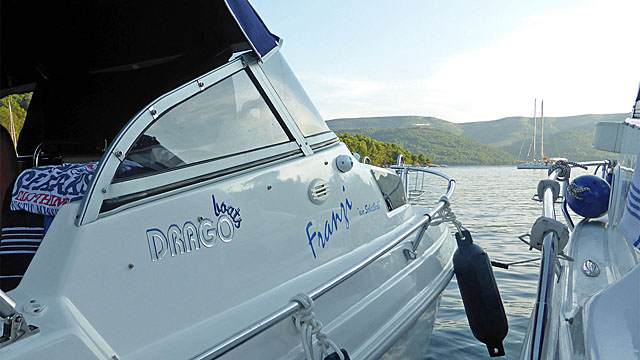 eine Drago Fiesta 540 mit 90 PS Außenborder, von der Crew gerne auch liebevoll