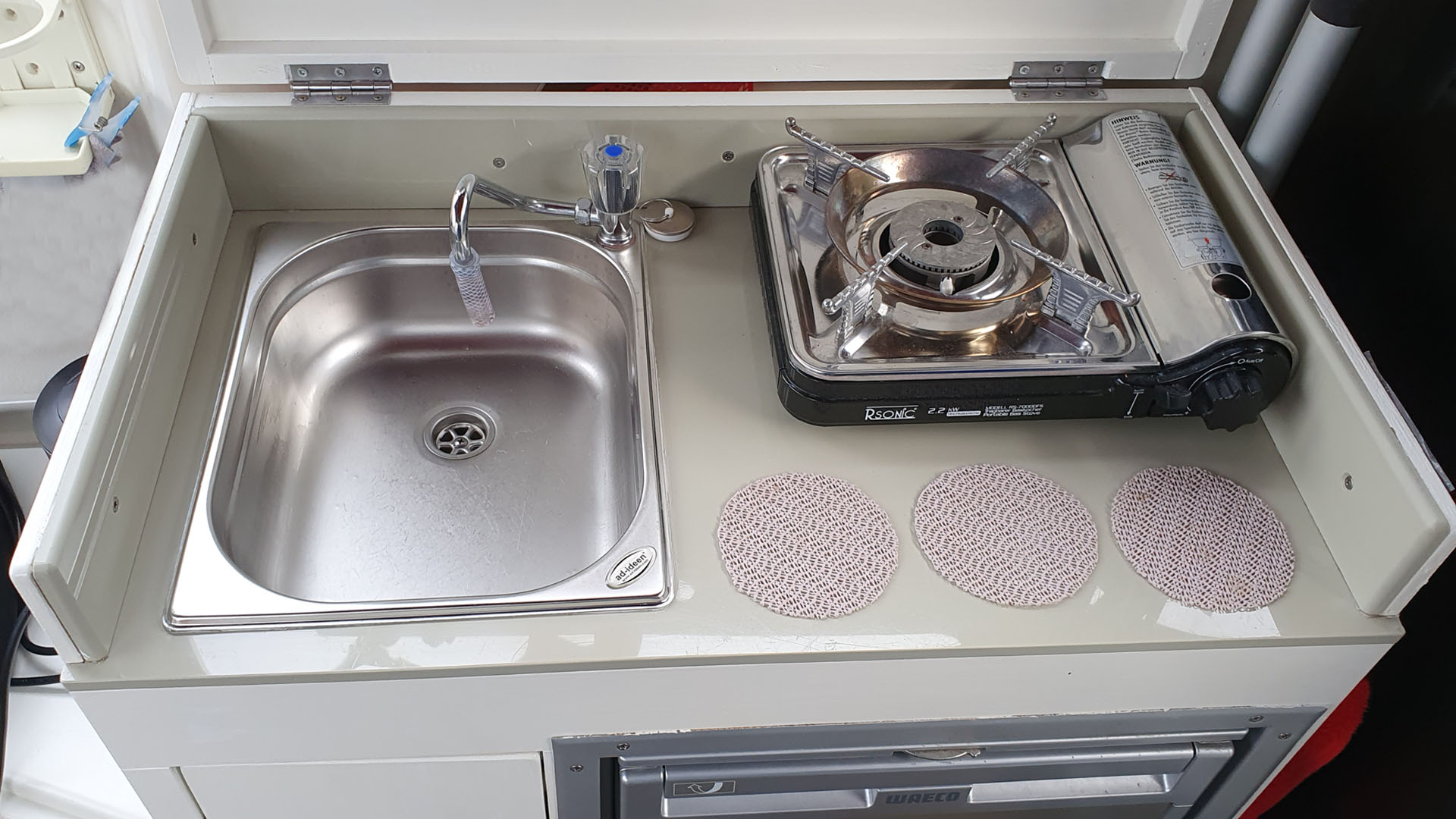 Thomas Einbauten an der Backbordseite bringen Spüle und Kocher in die Plicht, darunter den Kühlschrank und zusätzlichen, gut zugängigen Stauraum, der an Bord der 660 in der Basisausführung Mangelware ist.