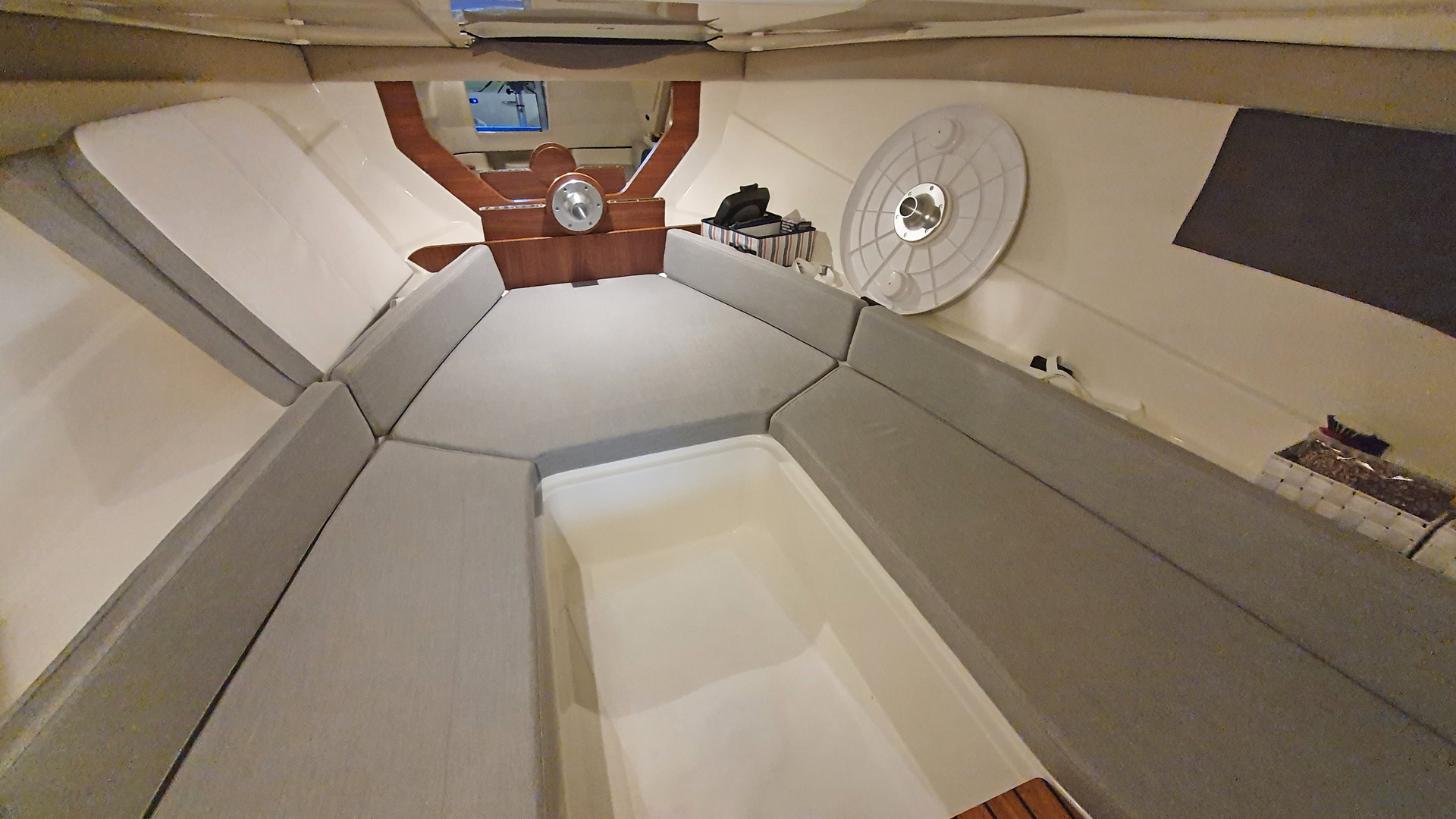 Die Plicht mit zwei Einzelsitzen, Pantry-Block und Rundsitzgruppe im Heck.