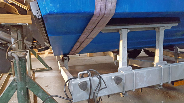 Zunächst wollen wir die TRUE LOVE vom Trailer auf ein Arbeitsgestell umlagern, damit