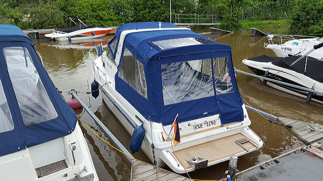 Die insgesamt acht Tenax-Knöpfe - auch die vier vorderen - sind ohne besonderen Aufwand vom Bootsheck auch mit meiner Körpergröße zu erreichen.