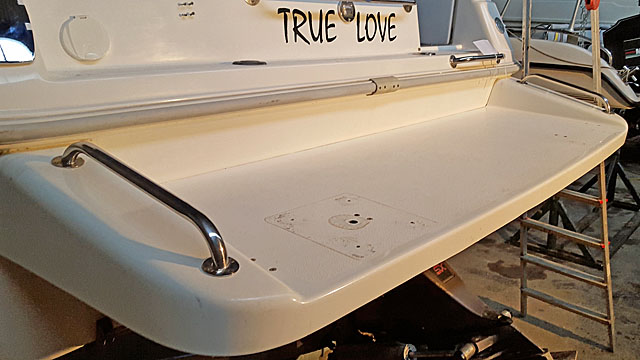 Im Bereich der Badeplattform musste die Halterung des Außenbordmotors und