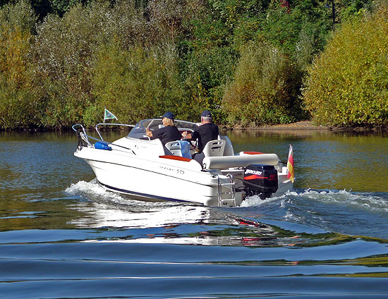 ist eine Jeanneau Leader 515, mit Mercury 60 PS Aussenborder.