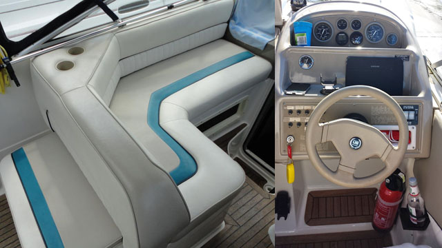 es eine ausziehbare Sitzbank. Badeplattform und Plicht sind mit Teak