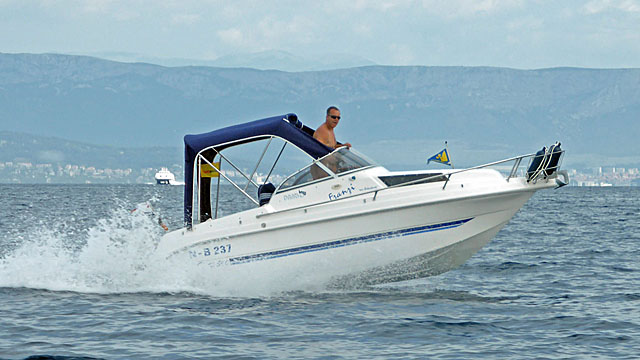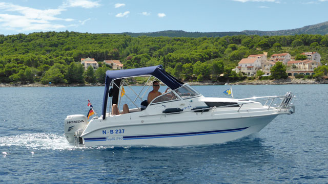 eine Drago Fiesta 540 mit 90 PS Außenborder, von der Crew gerne auch liebevoll