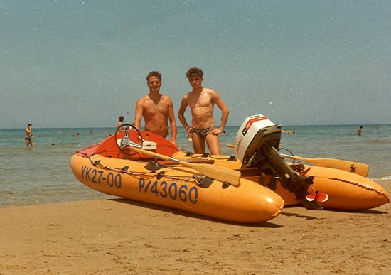 Und nun begann das Basteln: Erst ein Gummiboot ohne Motor, dann Boot mit