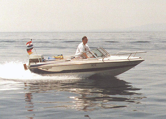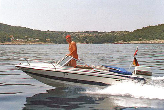 Mein zweites Boot, die IRIE (II), war eine bildschöne, weiß-blaue Glastron