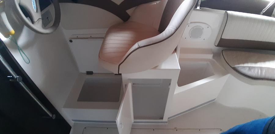 Thomas Eigenbau in der Plicht an der Steuerbordseite, eingerüstet im Frühjahr 2020 bringt zusätzliche Stauraum vor, unter und hinter dem Fahrersitz. Der Einbau ist von einer werftseitigen Einrüstung nicht zu unterschieden und passt perfekt in die 660.