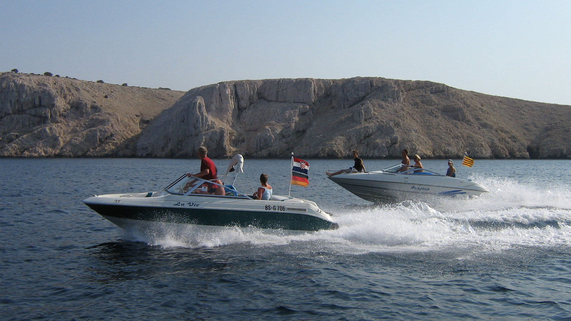 Sitzgruppe im Bug (Bowrider) Einzelsitz (Fahrer) Back-to-Back Sitz (Beifahrer) Hi-Lo Sitze achtern wandelbar zur Sonnenliege Integrierte Badeplattform Wasserskiöse Badeleiter Cabrio-Verdeck Sonnenschirm |