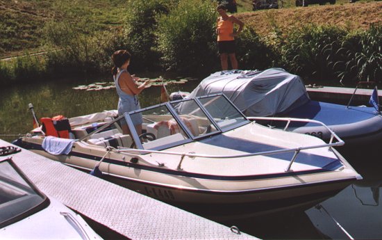 NONAME am Steg in Senheim - Elke klönt mit den Nachbarn, die doch