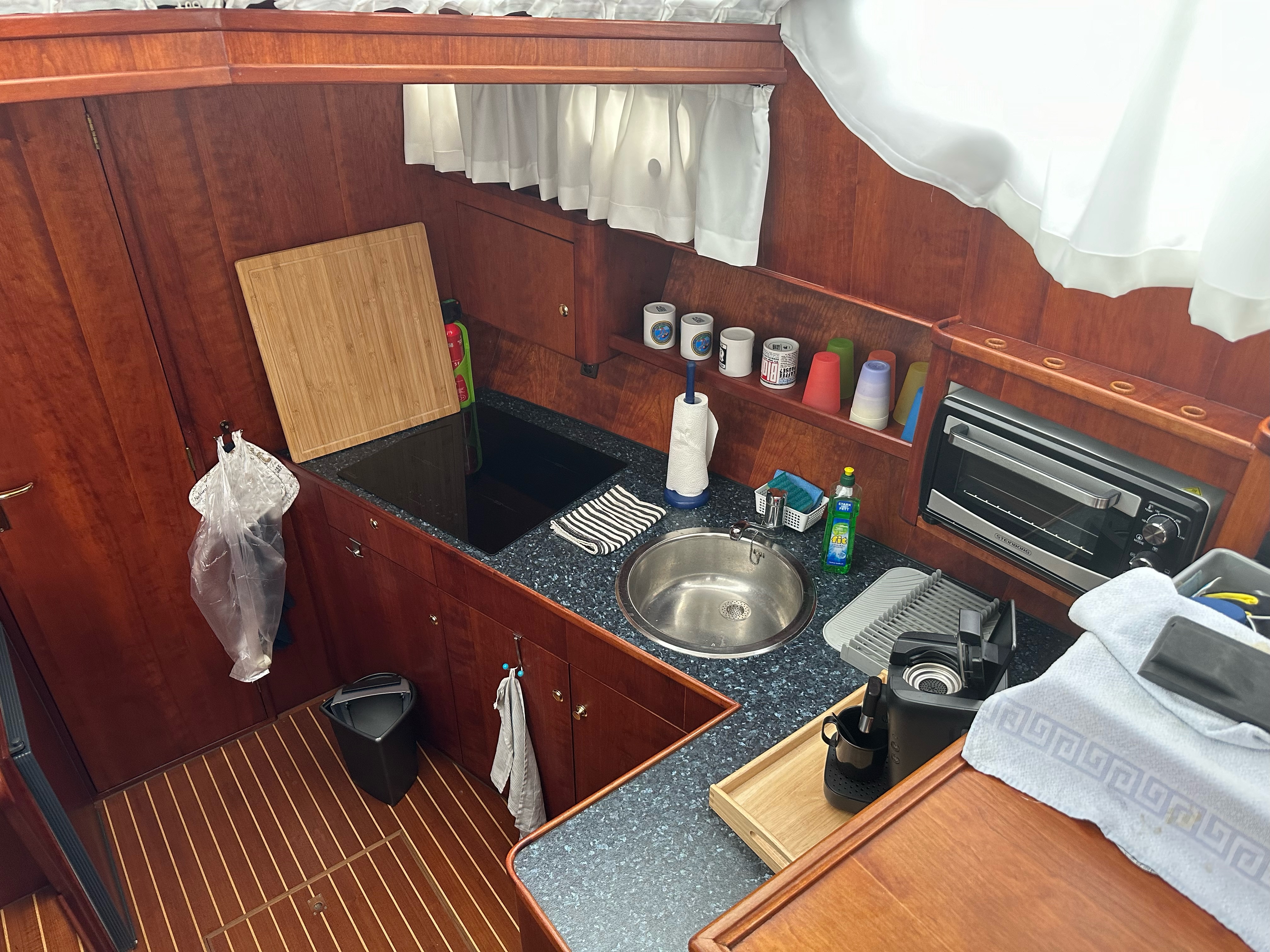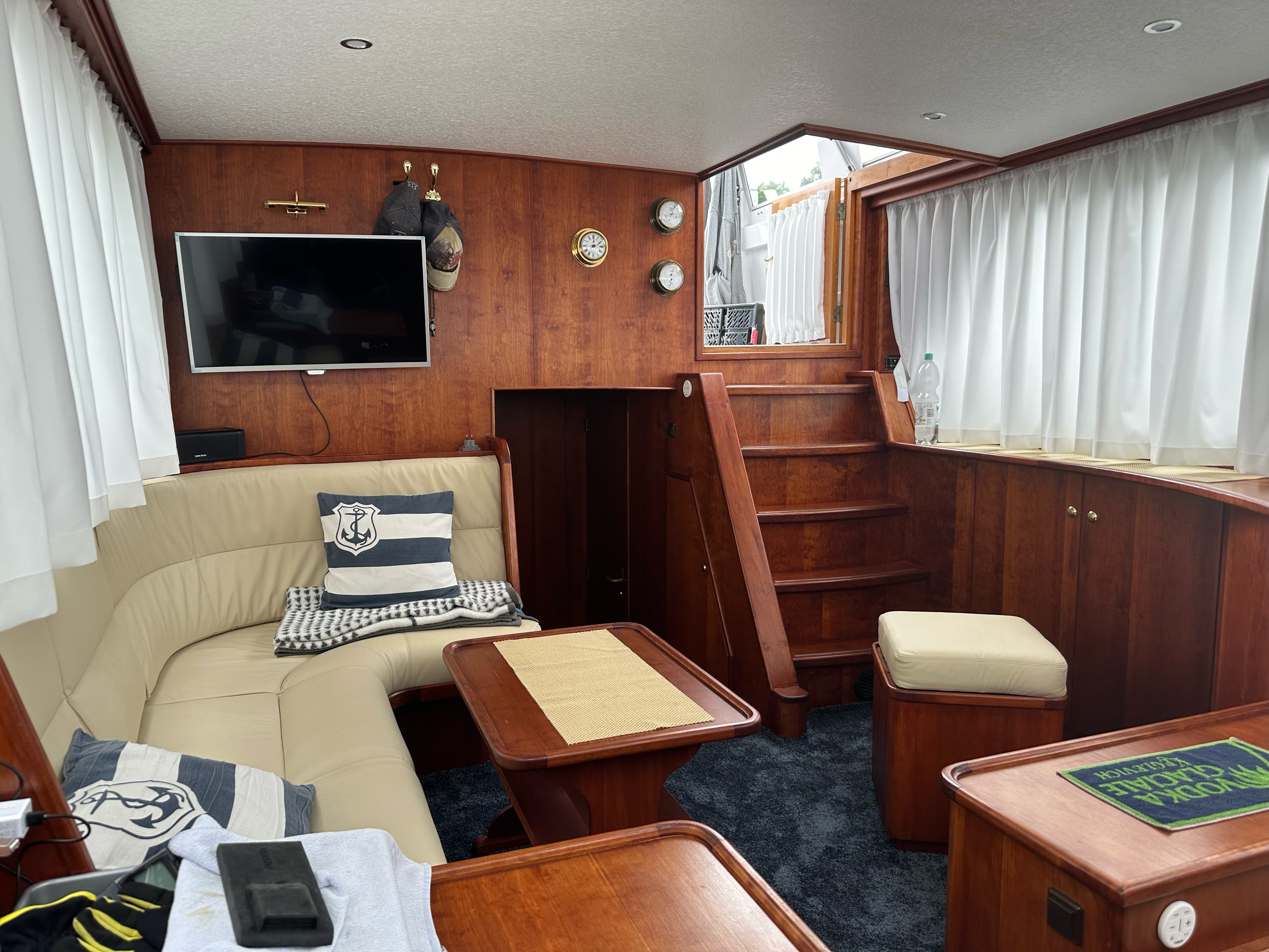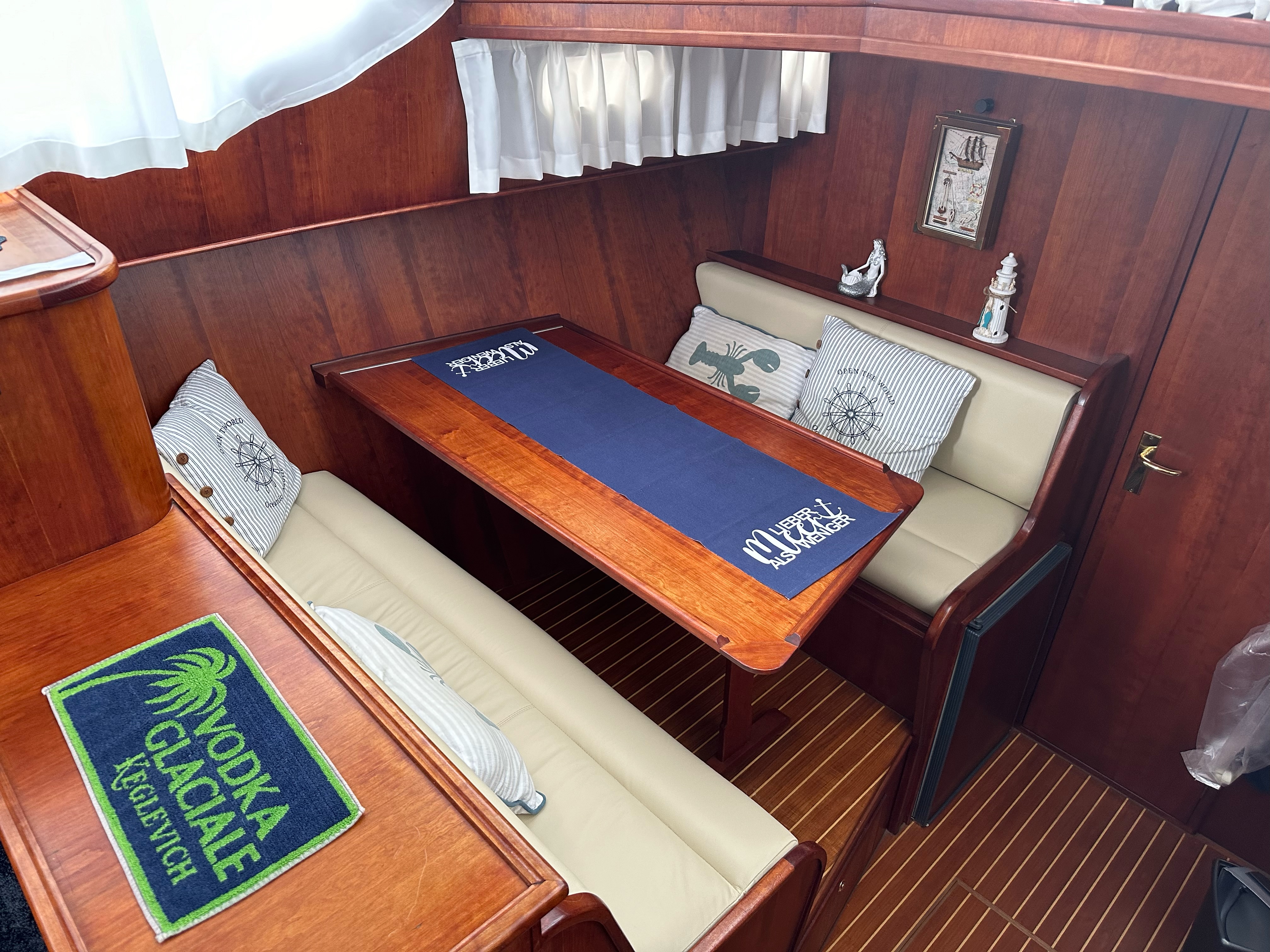 Die Innenausstattung ist im ganzen Schiff in Echtholz Kirsche ausgeführt.