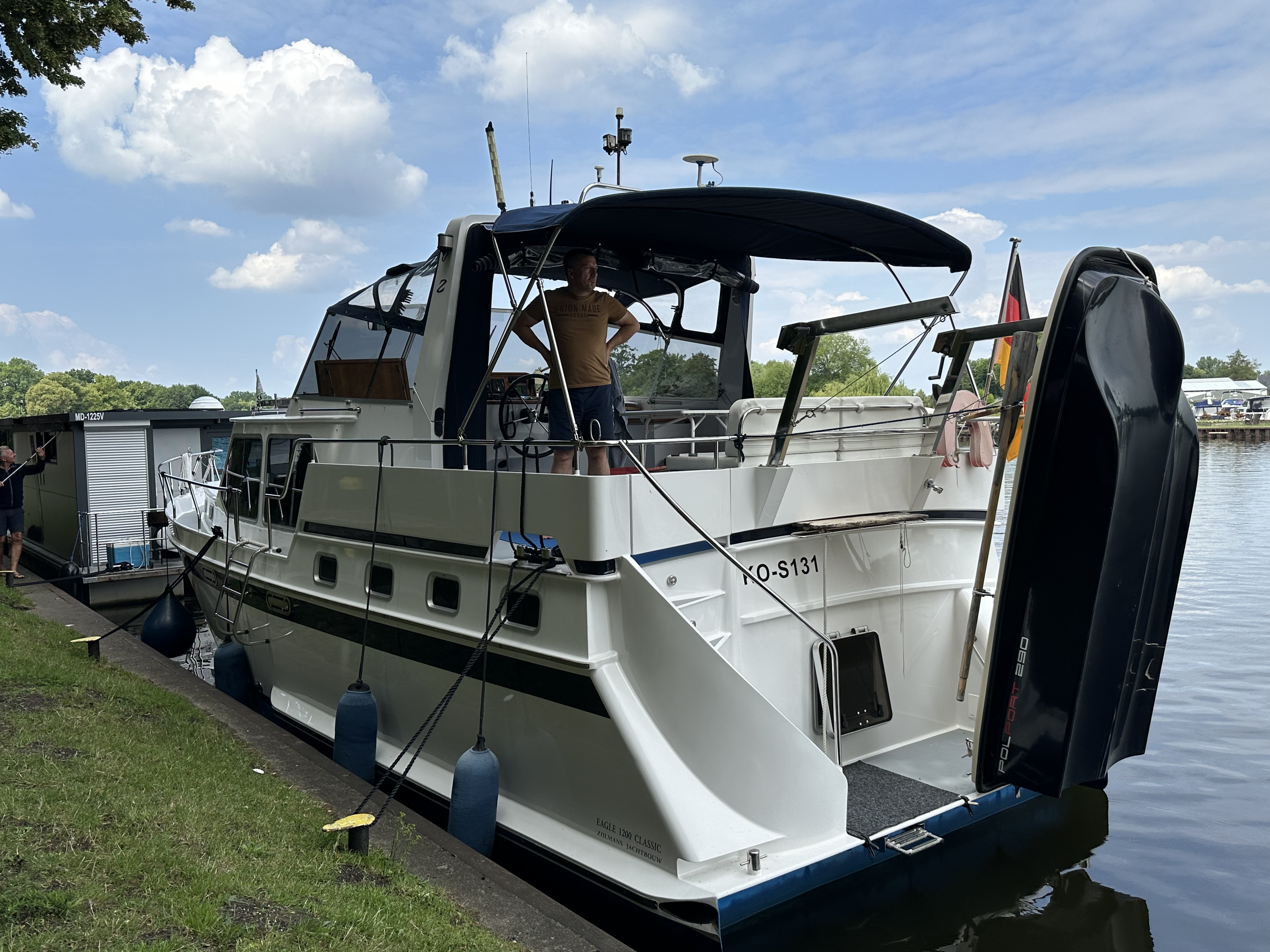Oberdeck wird von einem Bimini überdacht und wird alsbald auch ein