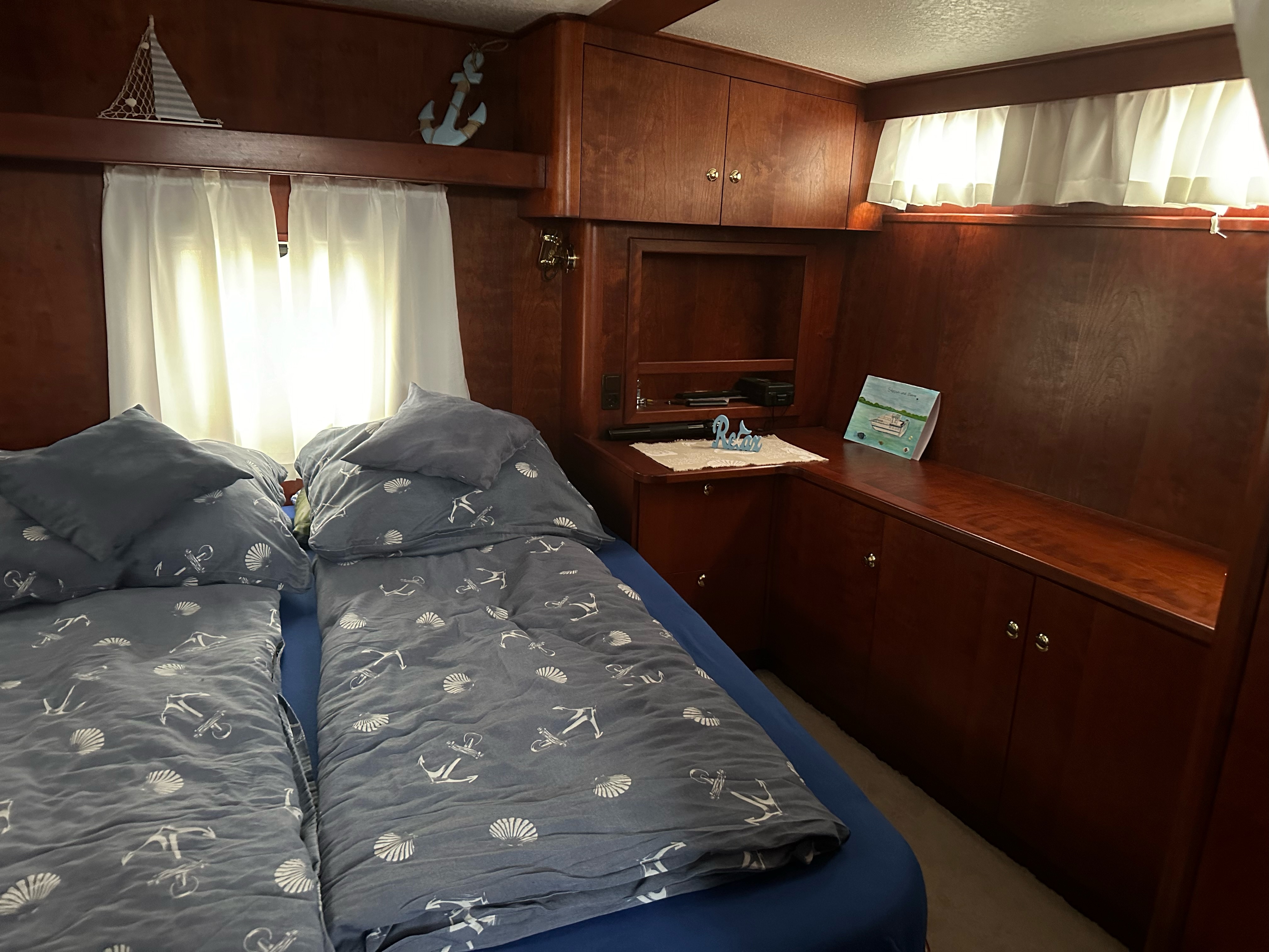 befindet sich im hinteren Teil der Yacht und ist mit einem französischen Doppelbett