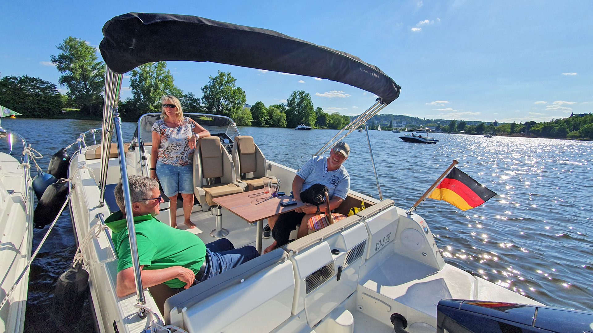 Die Badeplattformen bieten jetzt auch ausreichend Platz, um Bordhund Manolo