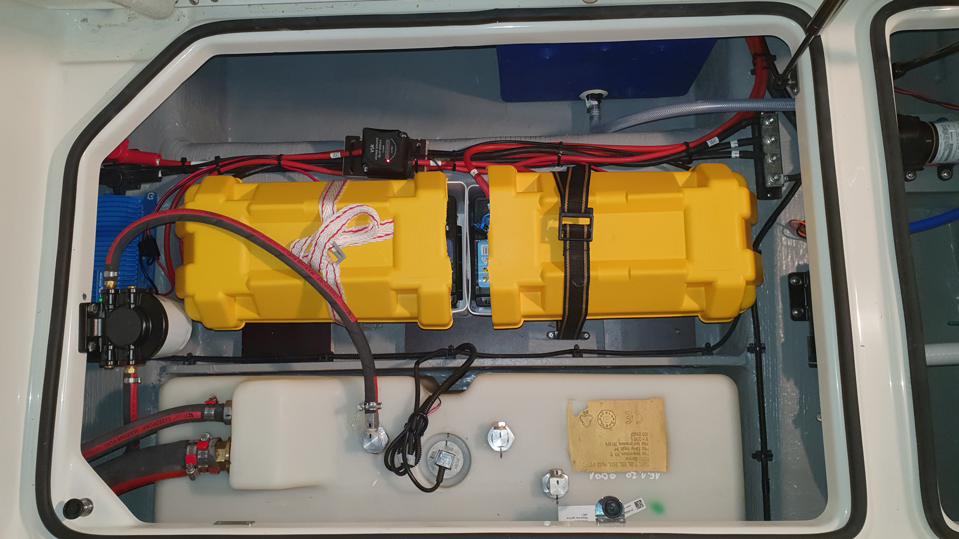 Der Installationsraum unter dem Boden der Plicht ist über eine große
