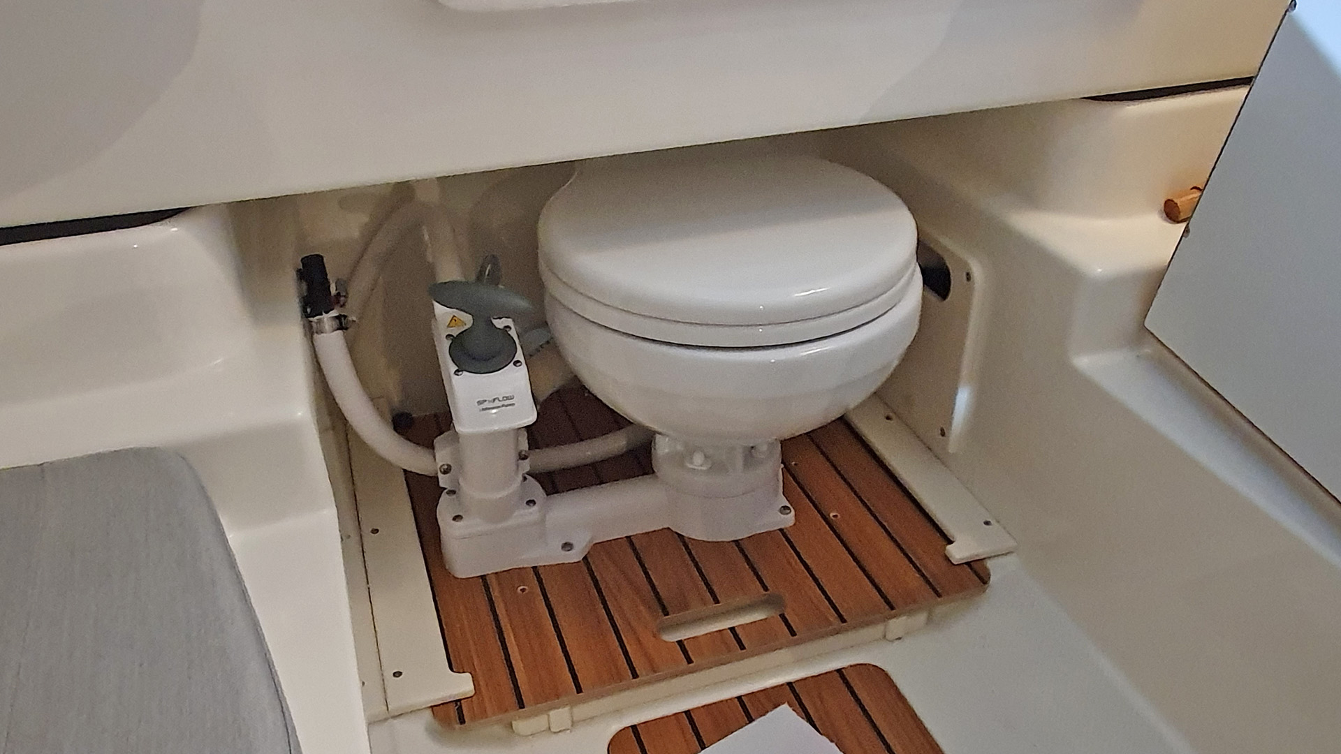 In der Kabine befindet sich zudem ein Marine-WC, das nur bei Bedarf aus