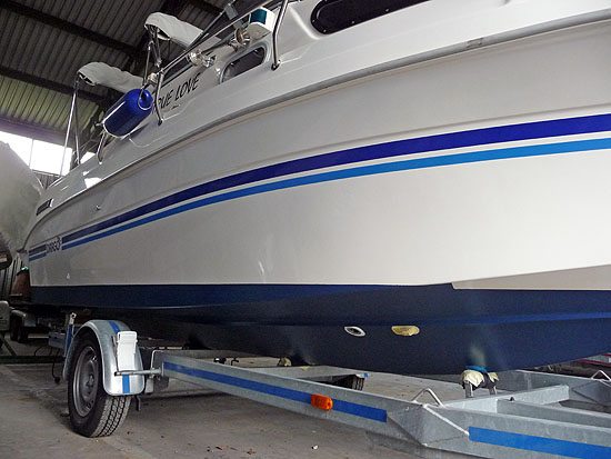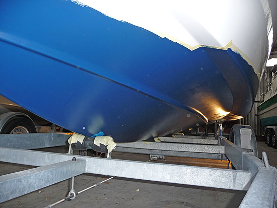 Anstrich mit dem gleichen Material: "Interspeed Ultra" in Marineblau von