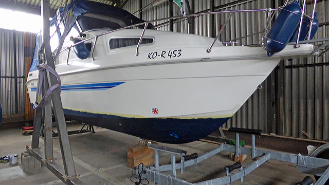 den halben Rumpf noch nicht gestrichen... Na gut, Bauhaus Nautic ist ja um