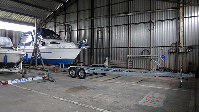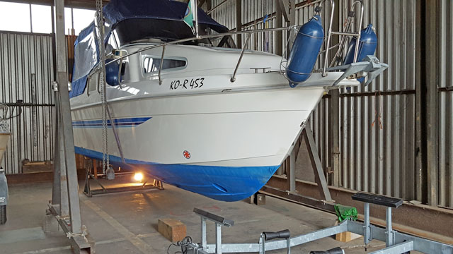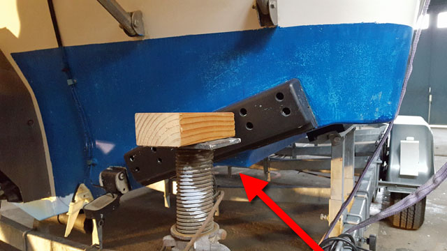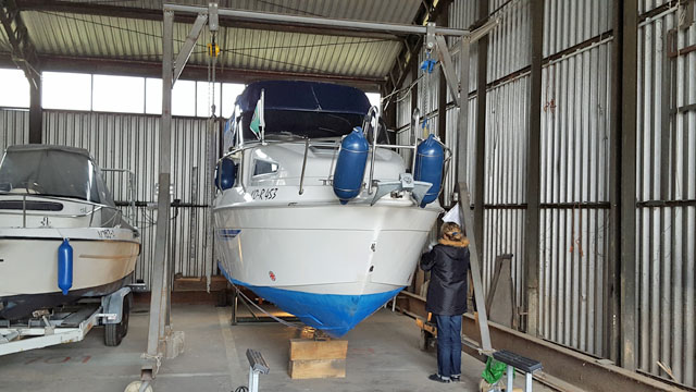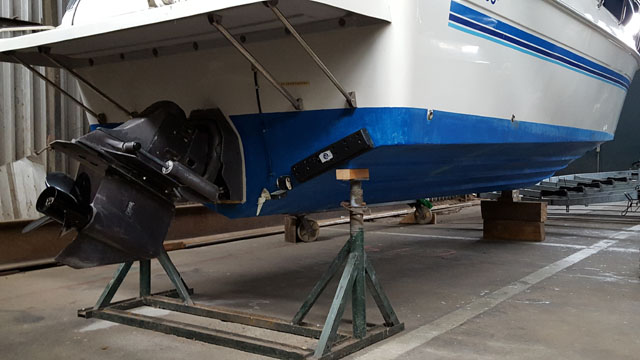 Zunächst wollen wir das Boot am Heck anheben und auf einem Stahlgestell
