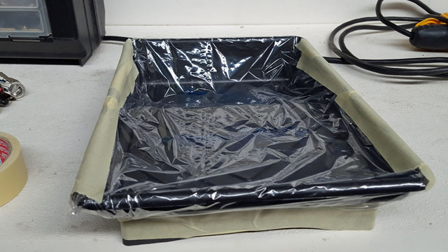 Das Farbabrollbecken ist mit Frischhaltefolie ausgelegt - ein Tipp von