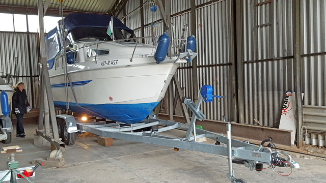 Zunächst wollen wir die TRUE LOVE vom Trailer auf ein Arbeitsgestell umlagern, damit