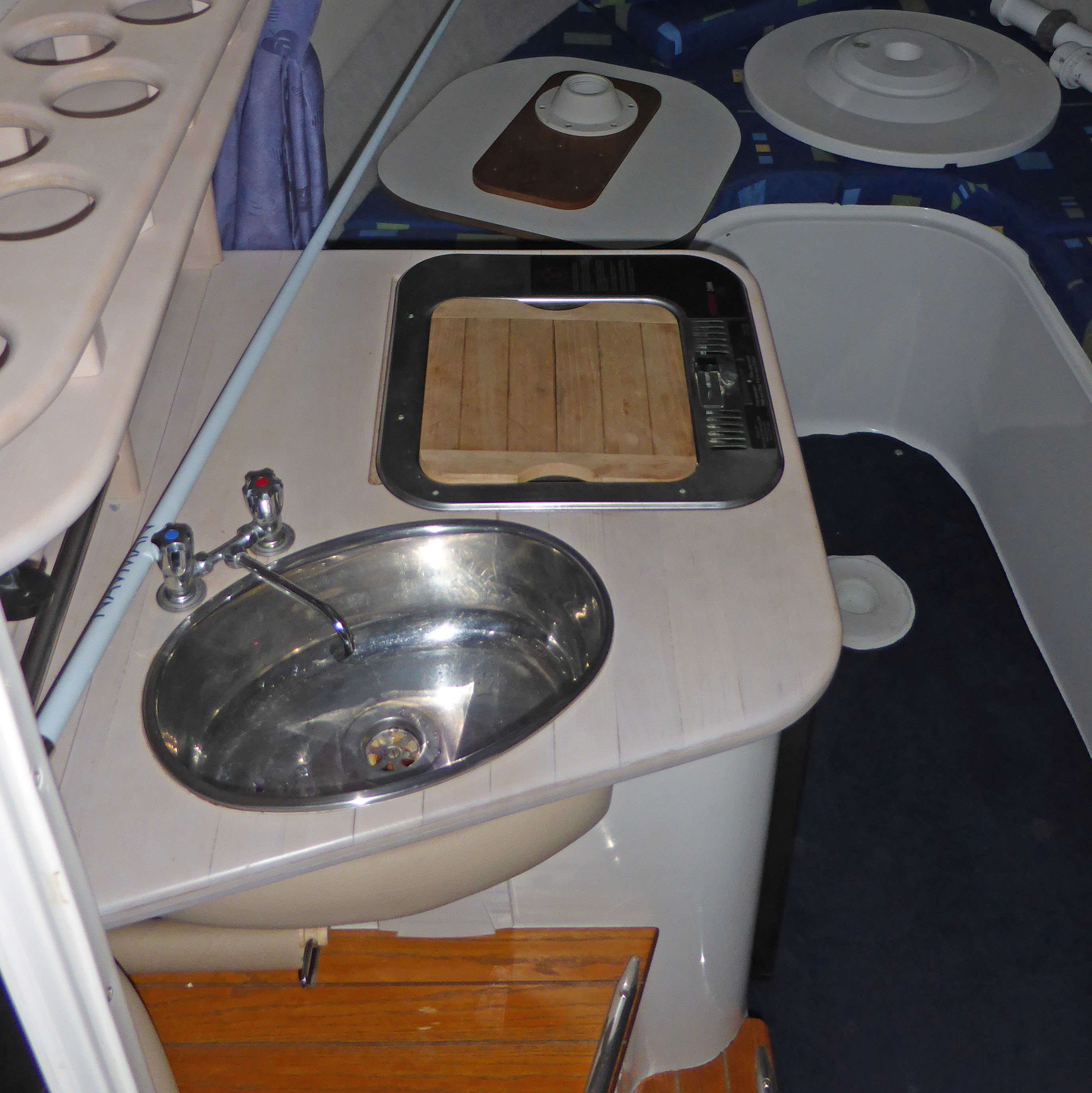 Der werftseitigen Pantryblock ist durchgehend aus weißem GFK bzw.