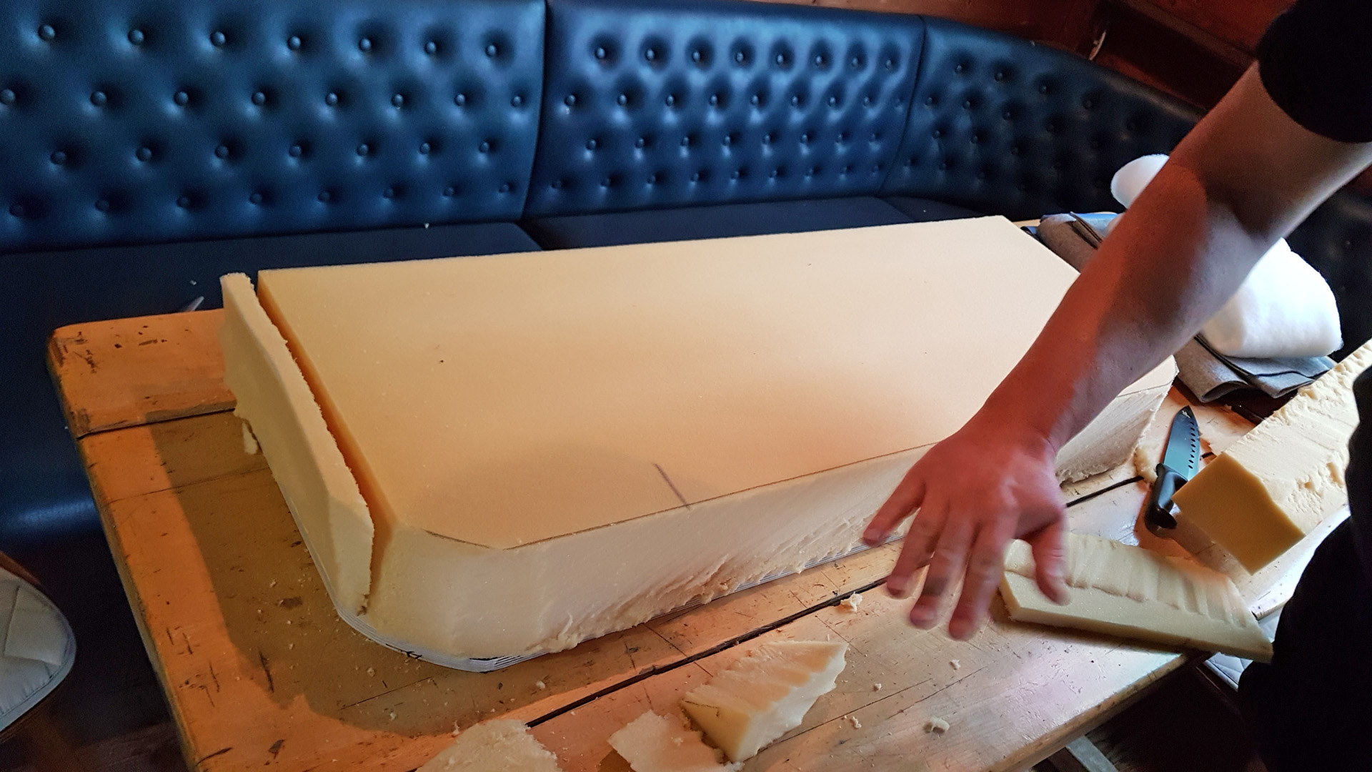 Der Schaumstoff-Block wird mit einem scharfen Messer in Form gebracht
