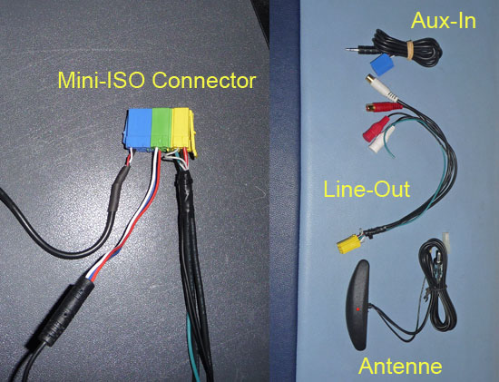 ein kleinen Kabel an der Mini-ISO Buchse auf der Rückseite des Radios