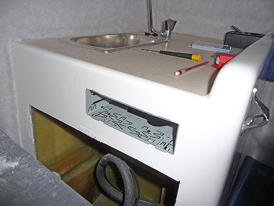 Darüber kann man den Borddurchbruch vom Waschbeckenabfluss erkennen..