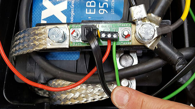 Als Sensor für den Batterie-Computer dient ein niederohmiger Messshunt, über den alle Lade- und Entladeströme fließen.
