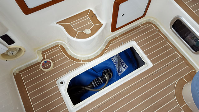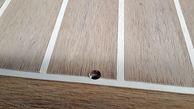 Der abgeklebte Backbord-Rand der Plicht