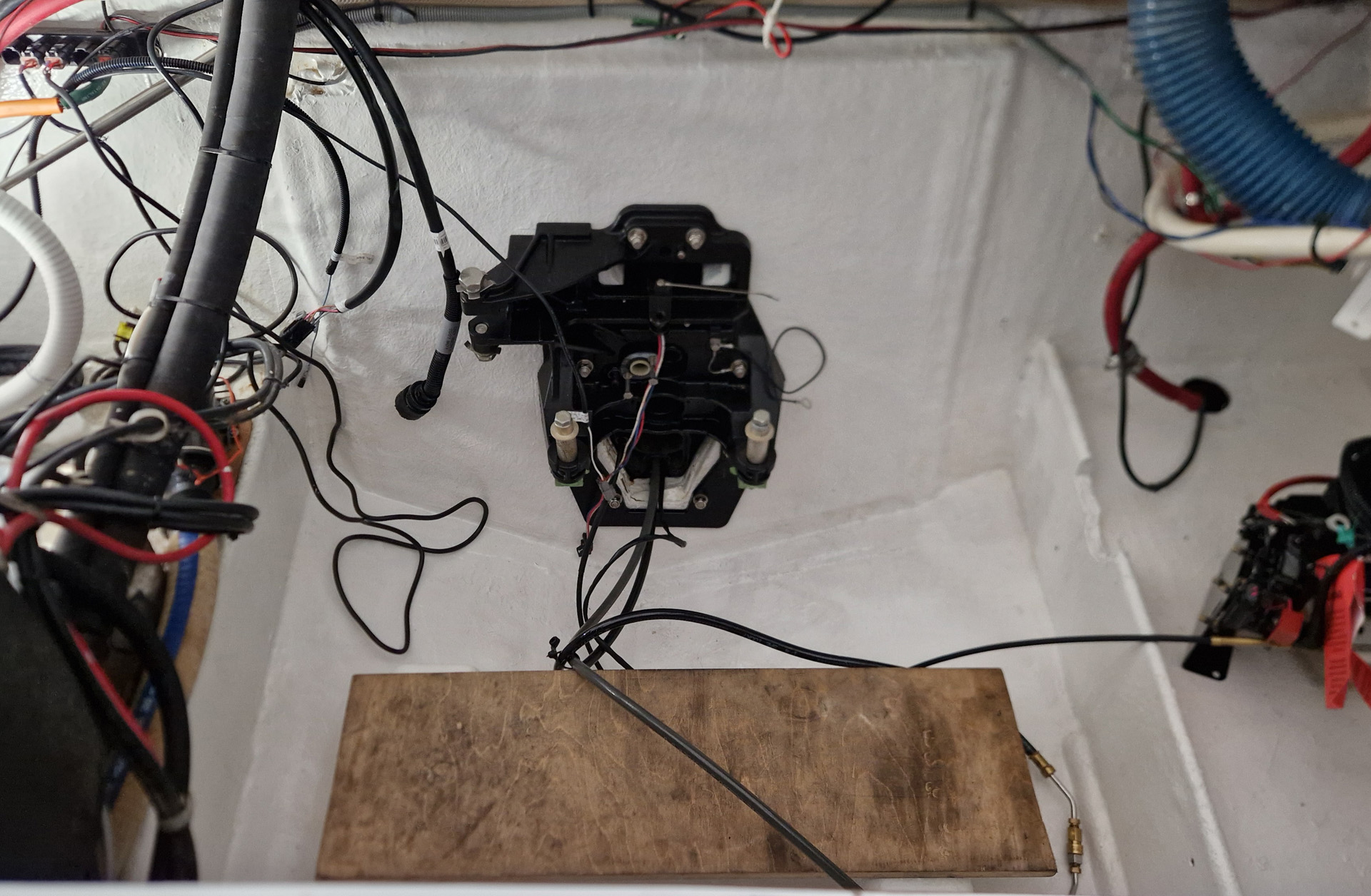 Platz achtern Backbord gefunden. Auch der Wasserboiler ist wieder am Motor