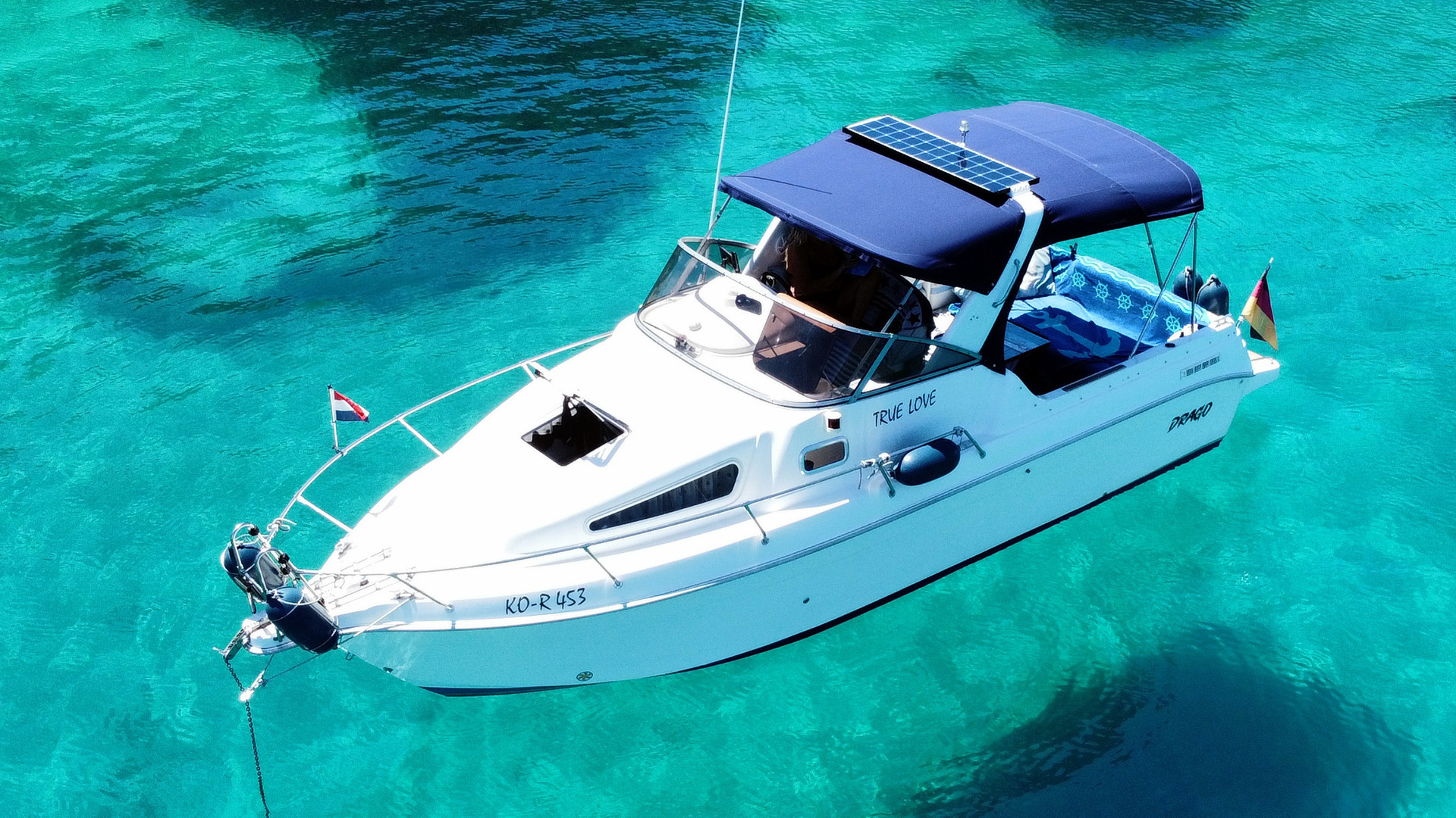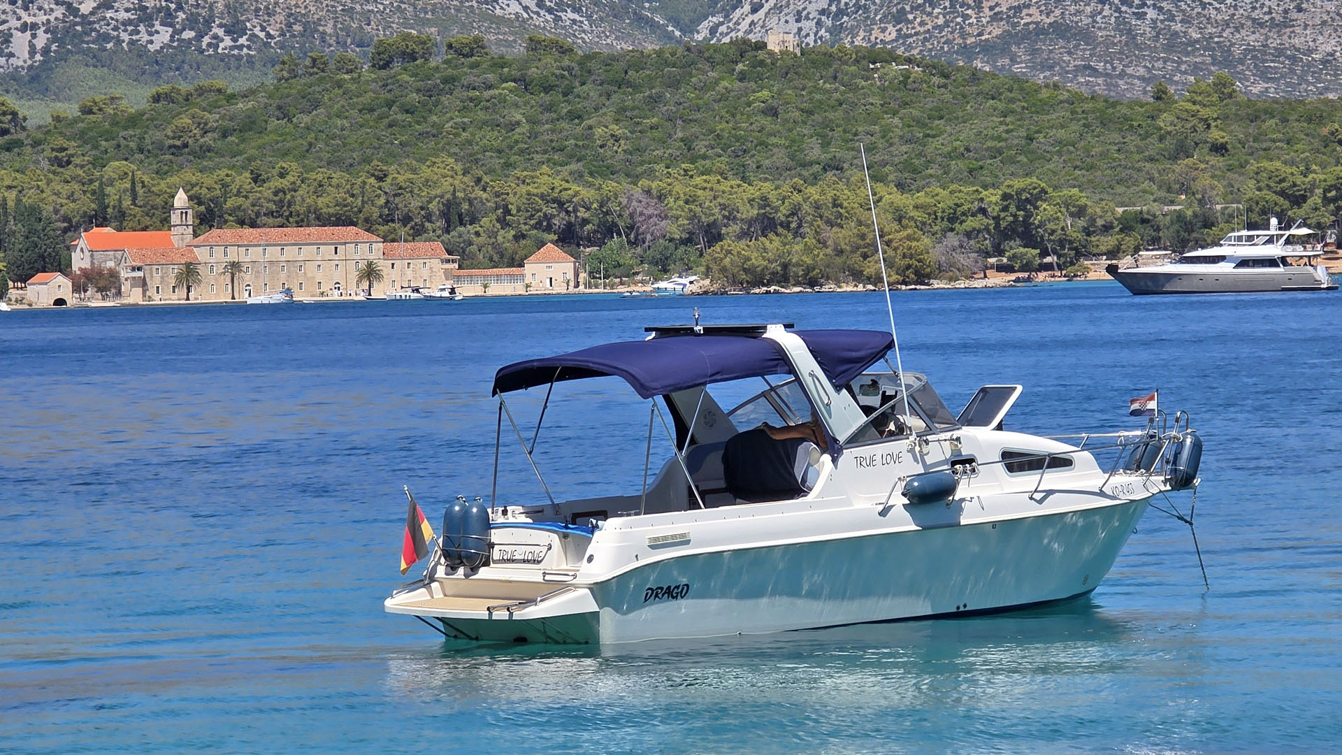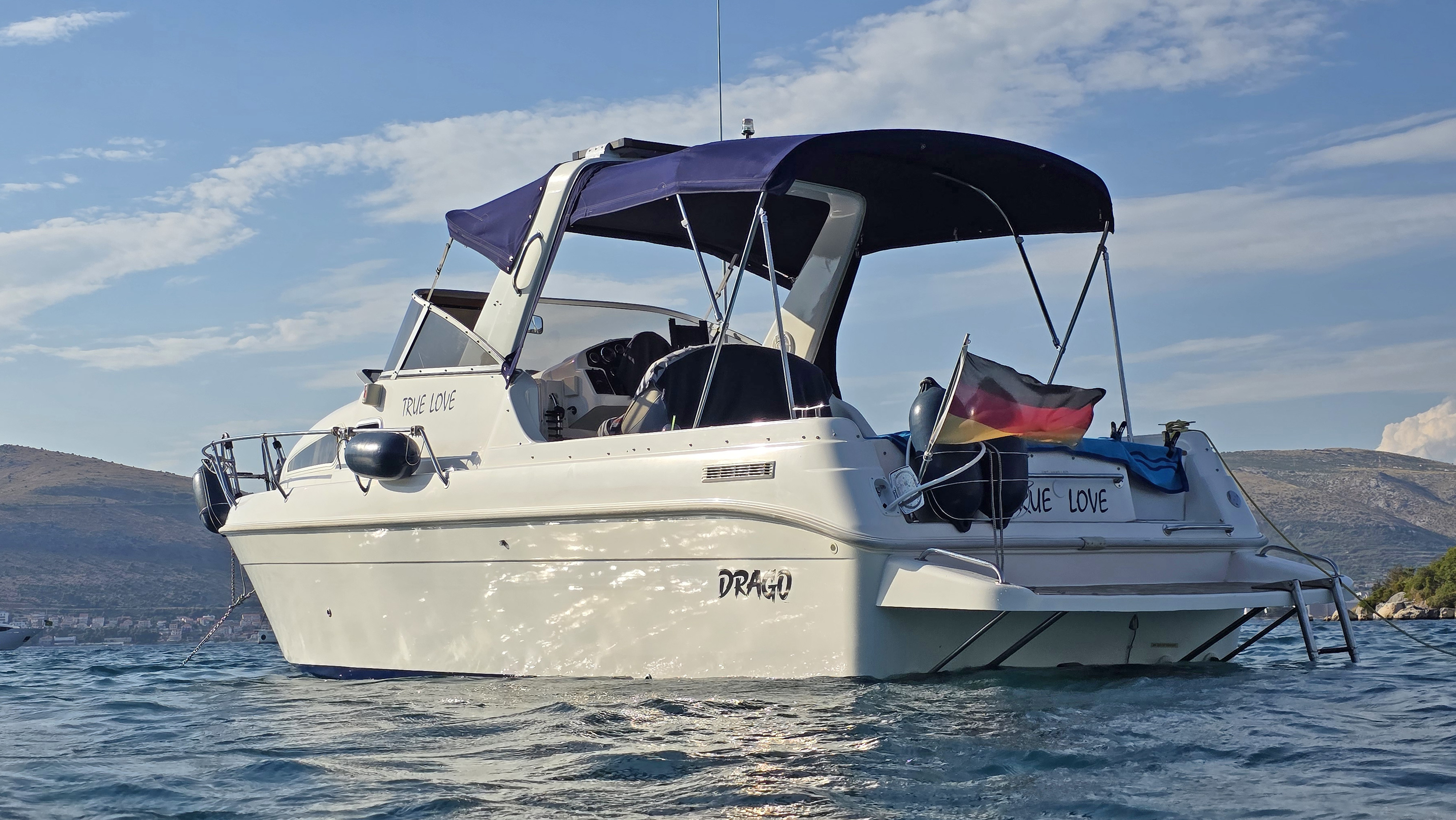 Seit der Saison 2015 sind wir Besitzer der mittlerweile vierten Bootsgeneration mit dem bedeutungsvollen Namen TRUE LOVE. Wir haben diese Boot 2015 aus erster Hand erworben. Es wurde 2004 in der Drago-Werft in Griechenland gefertigt. Wir haben nach genau diesem Modell gesucht, das zuletzt als DRAGO 26 angeboten wurde, mittlerweise aber nicht mehr produziert wird. Mit diesem Bootstyp werden alle unsere Wünsche an ein trailerbares Tourenboot erfüllt.