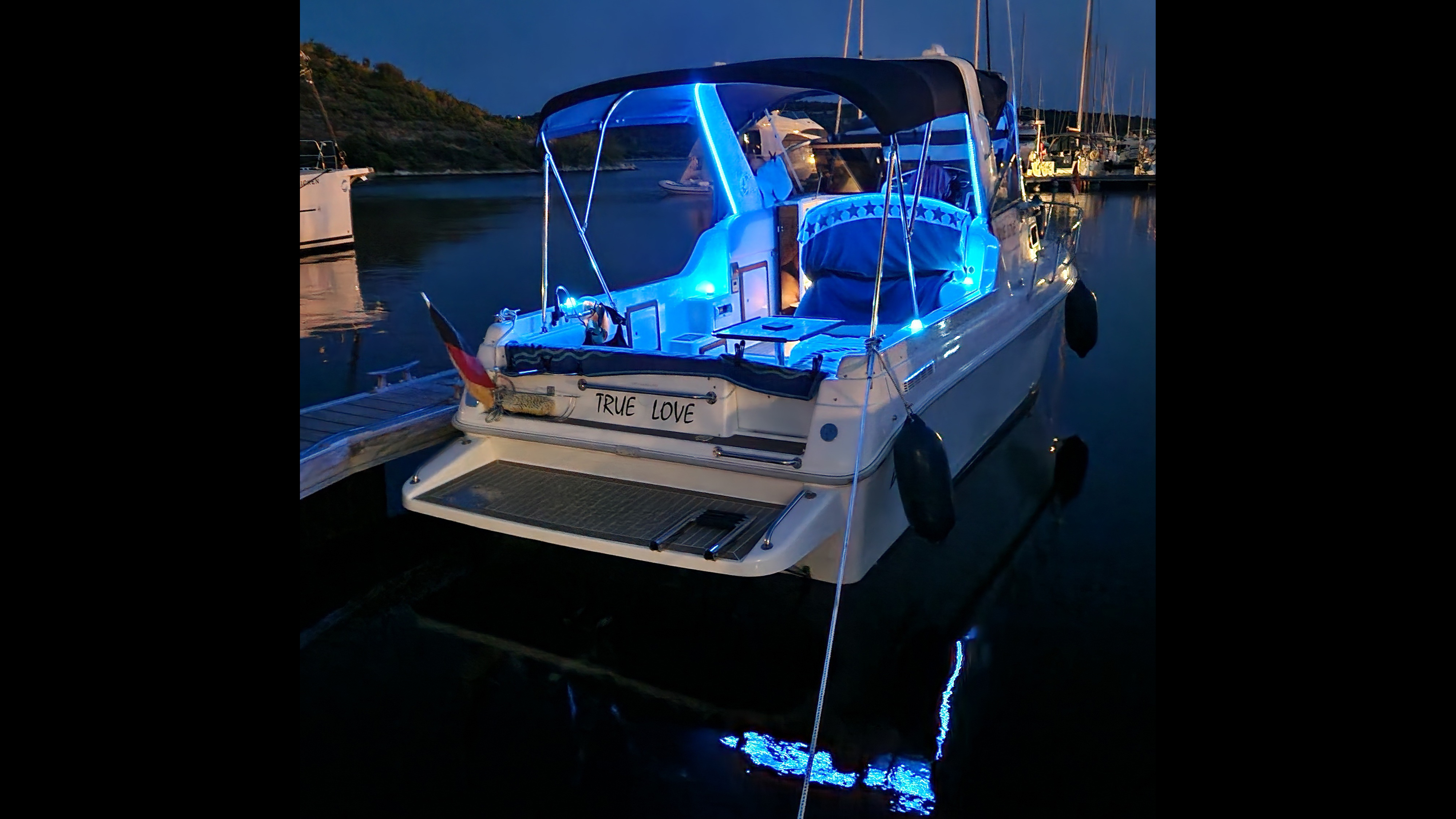 TRUE LOVE im Video (4K oder HD-Auflösung auswählen) Als Antriebsstrang haben wir in 2024 einen neuwertigen und 250 PS starken Mercruiser 4.5L V6 Motor nebst Bravo 3 "DuoProp" Antrieb einbauen lassen. Damit wurde nach 20 Jarhren und über 1000 Betriebsstunden werftseitige Motorisierung mit 190 PS und Single Prop aus dem Hause Volvo Penta ersetzt.