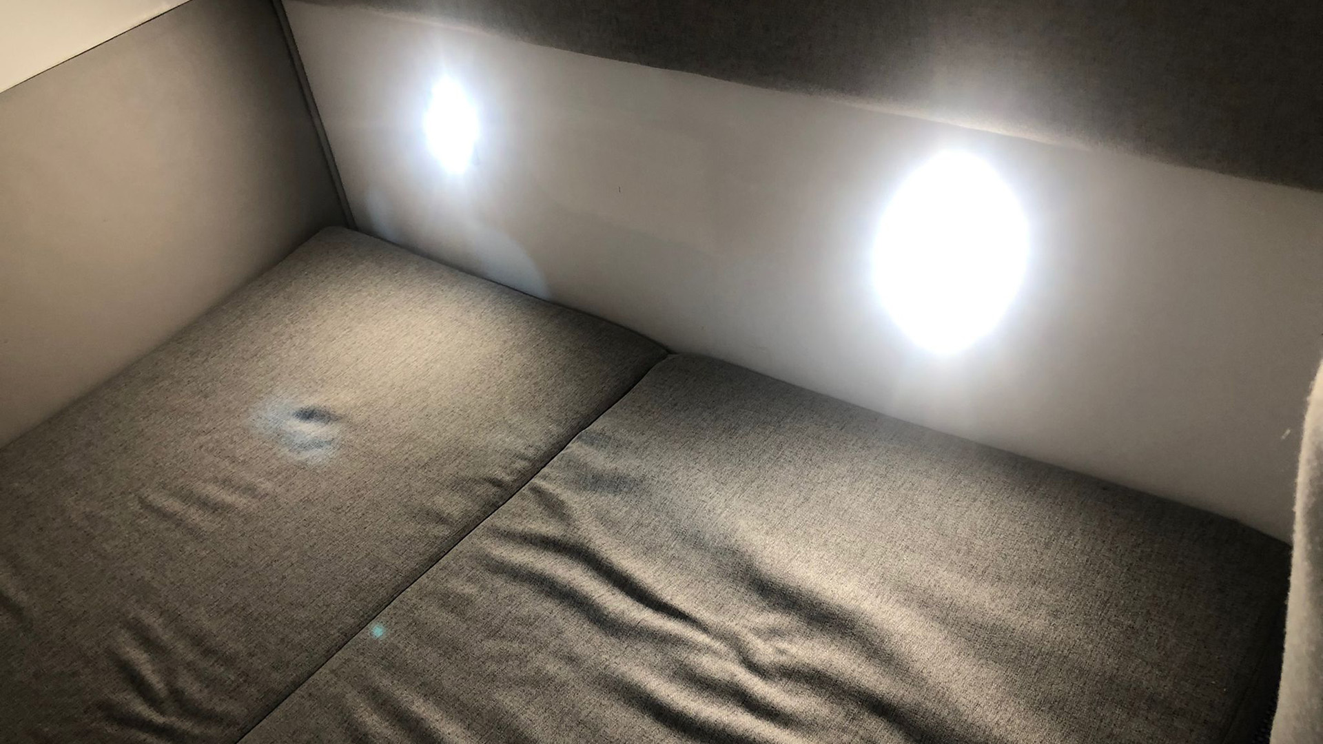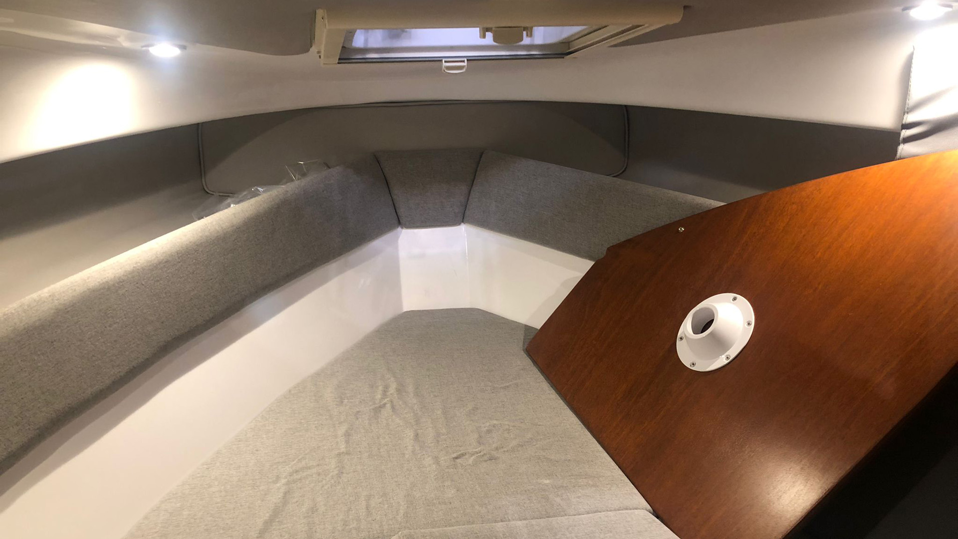 Vorschiff wird durch das Fluchtluk und dezente Deckenstrahler erhellt. Zum